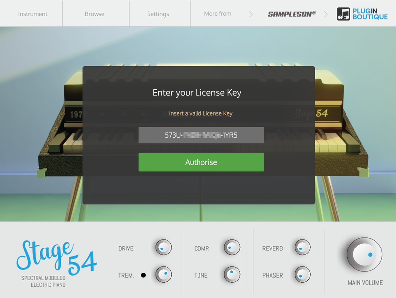 10. Launch your DAW > Create a new Virtual Instrument track > Insert Stage54 onto the channel > Paste your 16-digit serial number found within your Sounds Space User Account into the box > Click 'Authorise'.