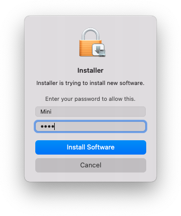 8. Enter your system password > Click 'Install Software.