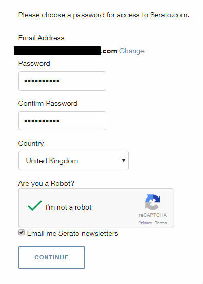 3. Enter and confirm your chosen password before choosing your country, ticking the required box and clicking 'Continue'.