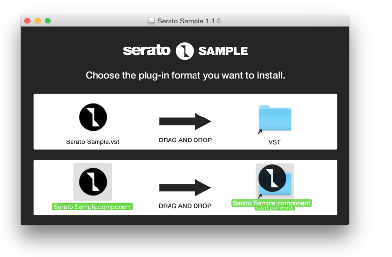 Drag and drop the 'Serato Sample. component' file into your Mac's 'Components' folder, before closing the window.
