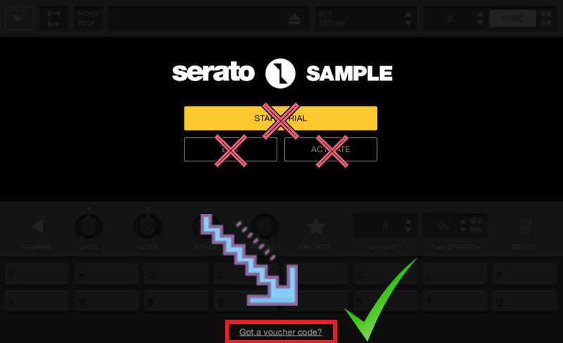 Important Note: Be sure to click the 'Got a Voucher Code?' button and NOT the 'Start Trial' or 'Activate' buttons to authorize Sample (as shown below).