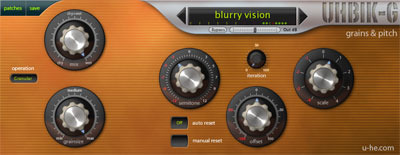 Effectively cuts audio material into snippets ('grains'), then plays them back at a variable rate – even backward. In the original tape devices, the radius of a rotating cylindrical tape-head determined grain size, and the length of tape in contact with the cylinder determined the overlap between grains. But Uhbik-G is not bound by the physical limitations of rotating cylinders – you can make it huge or impossibly small!