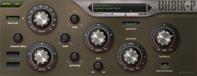Again, bass frequencies can bypass the effect ('bass sanctuary') to ensure LF-stability. Again, resonance accentuates the comb filter effect, but unlike Uhbik-F the distance between peaks is kept fairly constant. As the signal is phase-shifted each time it is fed back, frequencies are created that were not present in the original signal – the main reason why Uhbik-P is also great for wild metallic effects!