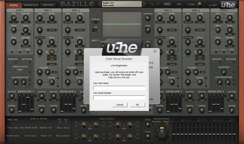 10. Select "Enter serial number..." from the dropdown men and enter your registered u-he username and Serial Number (when entering your name and Serial Number it's advisable to copy/paste the license information directly from the eMail into the plugin instead of typing each letter and number by hand). - Your plugin is now fully activated!