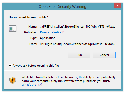 3. Select the correct format and bit-depth file that is compatible with your DAW > double-click on it to begin the installation process > click 'Run.'