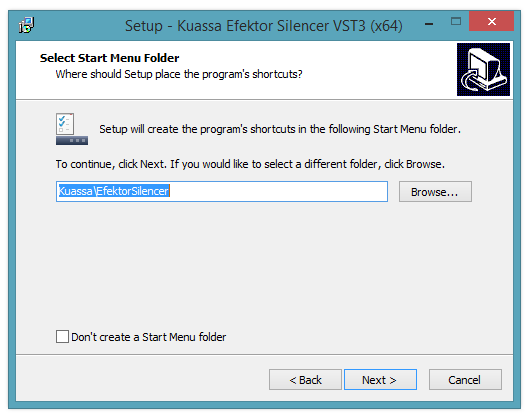 6. Select the 'Start Menu Folder' in which to create shortcuts to the software > click 'Next.'