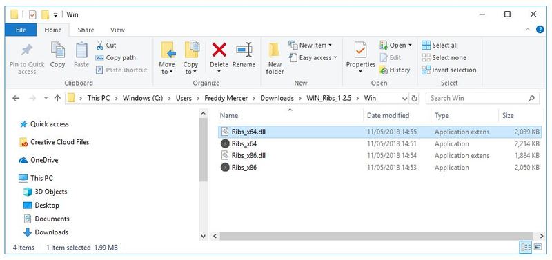 2. Navigate to the folder with .dll files > copy the file titled 'Ribs_x64.dll'.