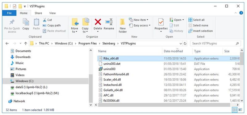 3. Navigate to the file path C:\Program Files\Steinberg\VSTPlugins > Paste the .dll file in this folder.