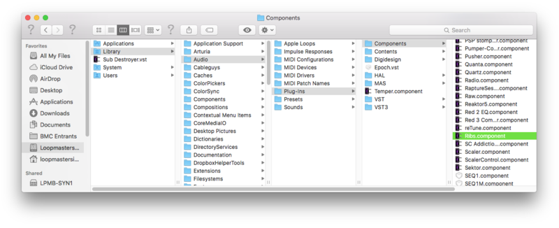 2. Navigate to the folder that contains the AU and VST components > copy the necessary component.