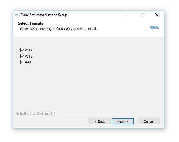 4. Select which plugin formats to install > Click 'Next'.