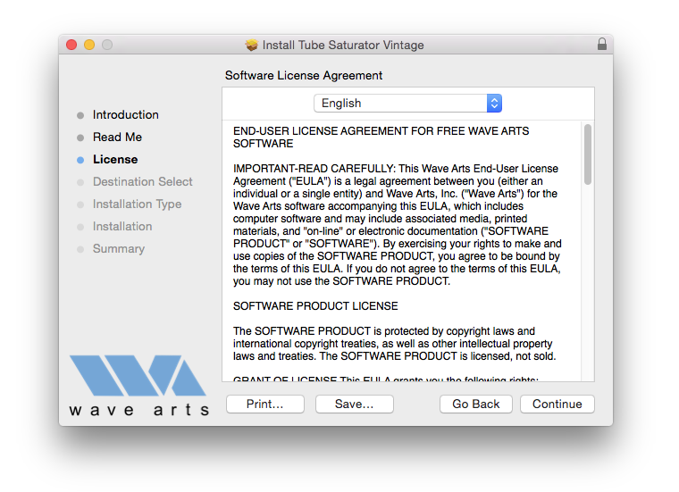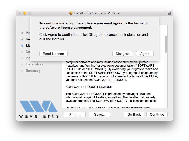5. Read the software license agreement and click 'Continue'.