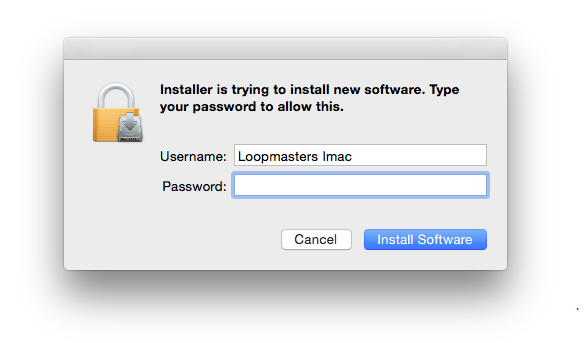 8. Enter your computer's username and password > Click 'Install Software'.