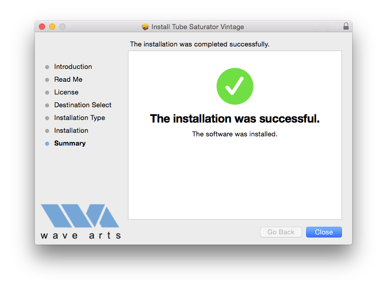 9. Your installation is complete. Click 'Close'.