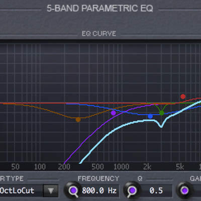 Covers the entire audio spectrum allowing you to edit the Frequency, Gain, and Q of each of the 5 bands.